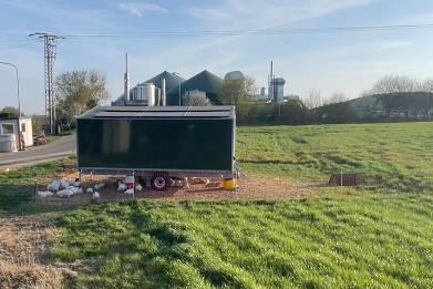 Unsere Hähnchen leben in einem modernen Mobilstall, der solarangetrieben beste Luft- und Temperaturbedingungen ermöglicht.